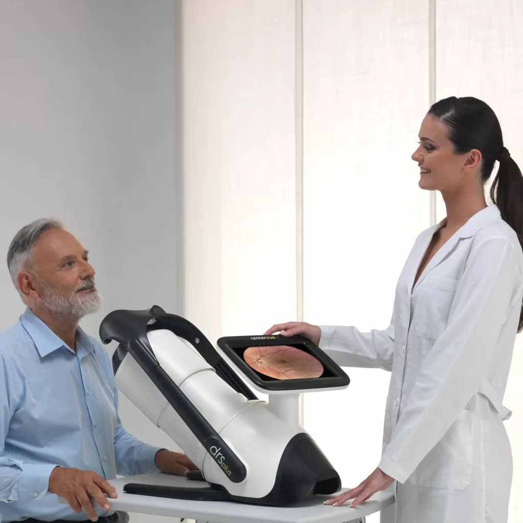 Rychlý a plně automatizovaný přístroj iCare DRSplus umožňuje zobrazování přes zornice o velikosti pouhých 2,5 mm bez nutnosti dilatace, což zajišťuje pacientům komfortní vyšetření. Tento snadno použitelný přístroj nabízí výhodu rychlé doby vyšetření a pomáhá urychlit pracovní postupy.