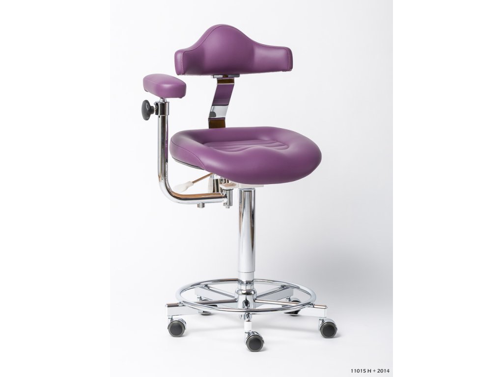 Židle je možné dodat ve variantách ( s místem pro nohy a nožním ovládáním výšky, v mnoha barvách)
