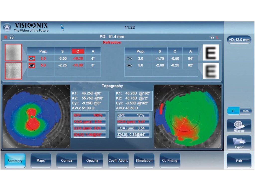 Díky technologii Shack-Hartmann wavefront v kombinaci s topografickými kroužky Placido a externí barevnou kamerou poskytuje VX 650 nástroje pro diagnostiku, hodnocení a monitorování keratokonu nebo jiných patologií rohovky, jako je například syndrom suchého oka.