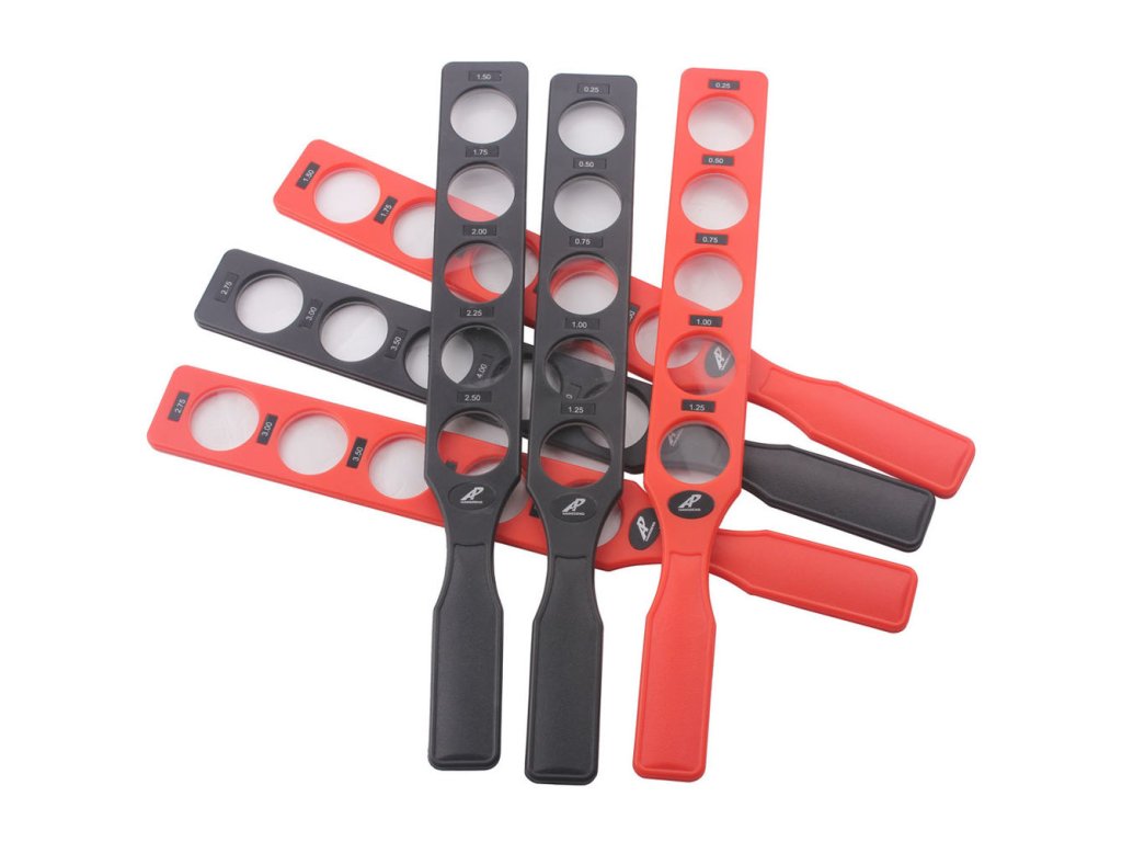 Skiaskopické lišty - barevné plastové rámy a hliníkové pouzdro